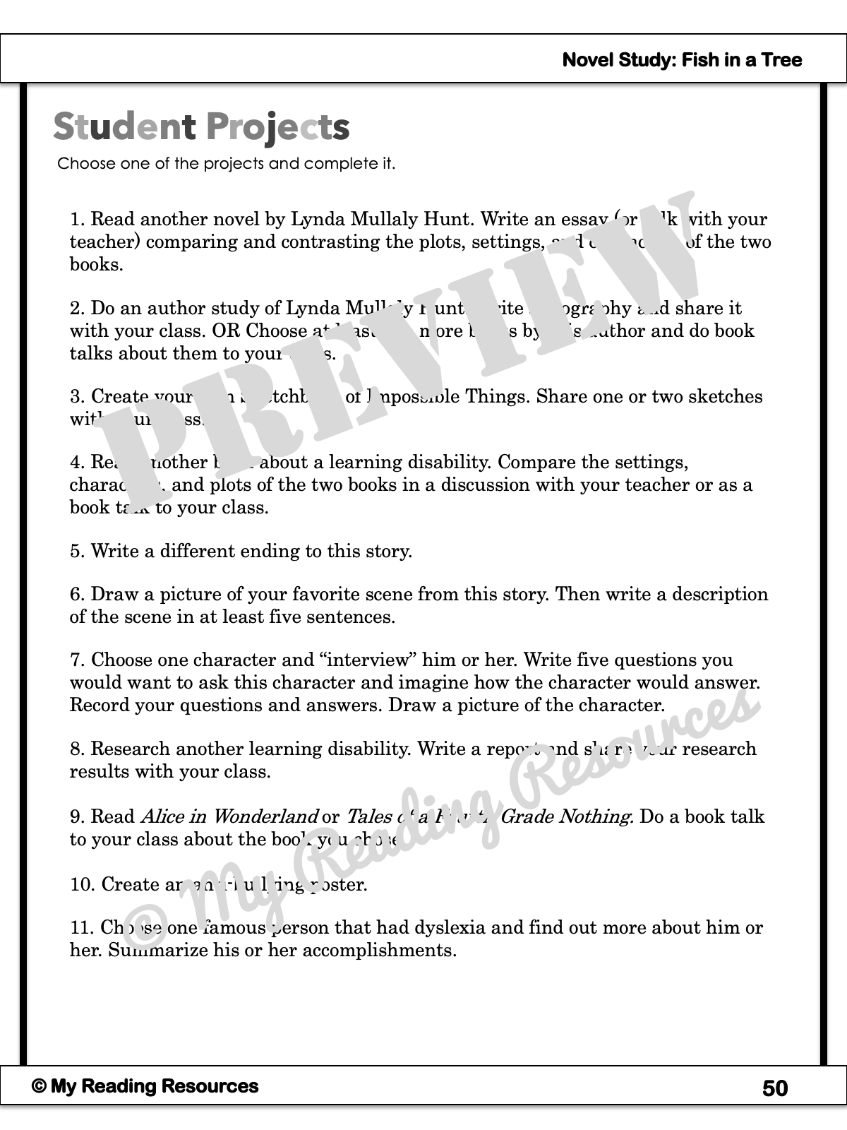 Fish In A Tree Student Worksheet Packet My Reading Resources